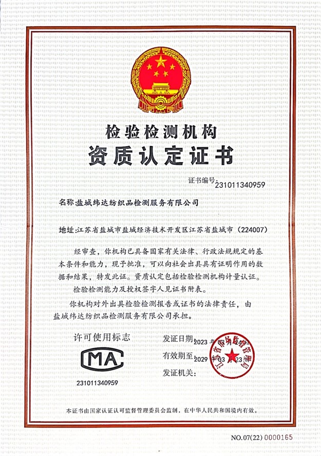 中國計量認證證書(CMA